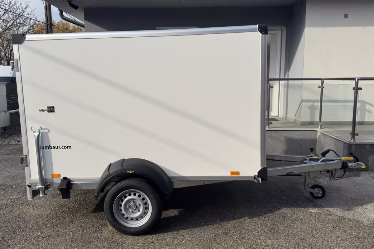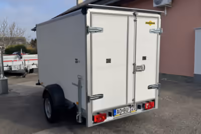 Prémium kategóriás egytengelyes, dobozos, fékezett pótkocsi, mely maximális stabilitást kínál. A tűzihorganyzott acél alváz, műanyag/gumi ajtó-tömítések, robusztus megerősítések a tetőn és az elülső falon, ezek mind a pótkocsi hosszú élettartamát és minőségét szolgálják. Az integrált rögzítőrendszer segít a rakomány biztonságos szállításában a pótkocsi belsejében. A lámpa megfelelő megvilágítást biztosít gyenge fényviszonyok esetén. Használatával csomagja/eszközei megbízhatóan és sértetlenül érik el a célállomást.